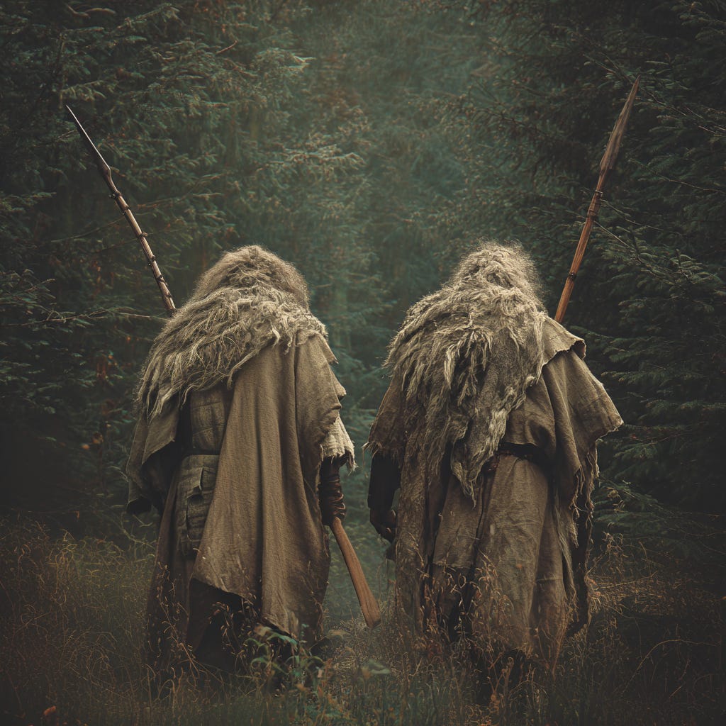 I’m using trialling the tool to produce images and short videos to work through some of the creative design around certain aspects of a story in my head. The following image, for example, is a still from a video I made for Liath Luachra: The Quiet One where I was trying to get a sense of two shady characters I needed for one particular scene in the book. This allowed me to play around with some samples before I chose one that I liked, and I then wrote the description from that. I’ll post the final video in the Paid Section when its ready.